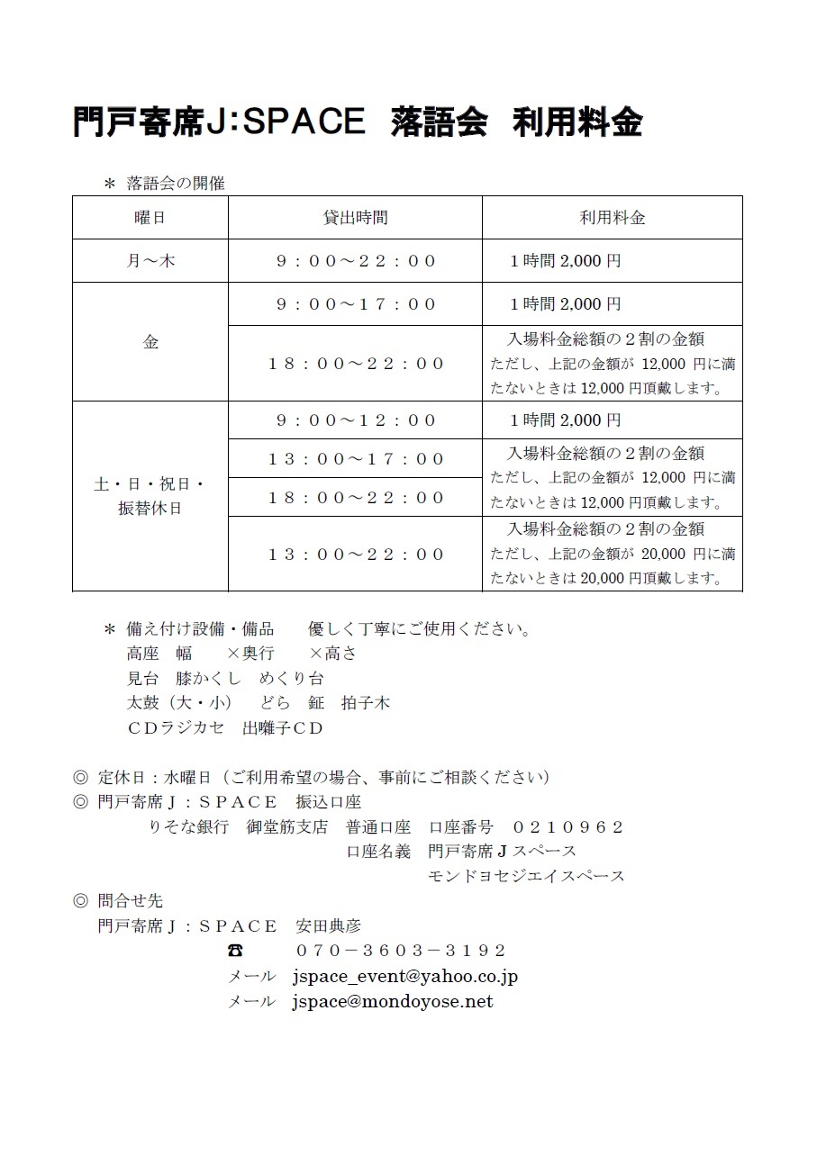 落語会-利用料金